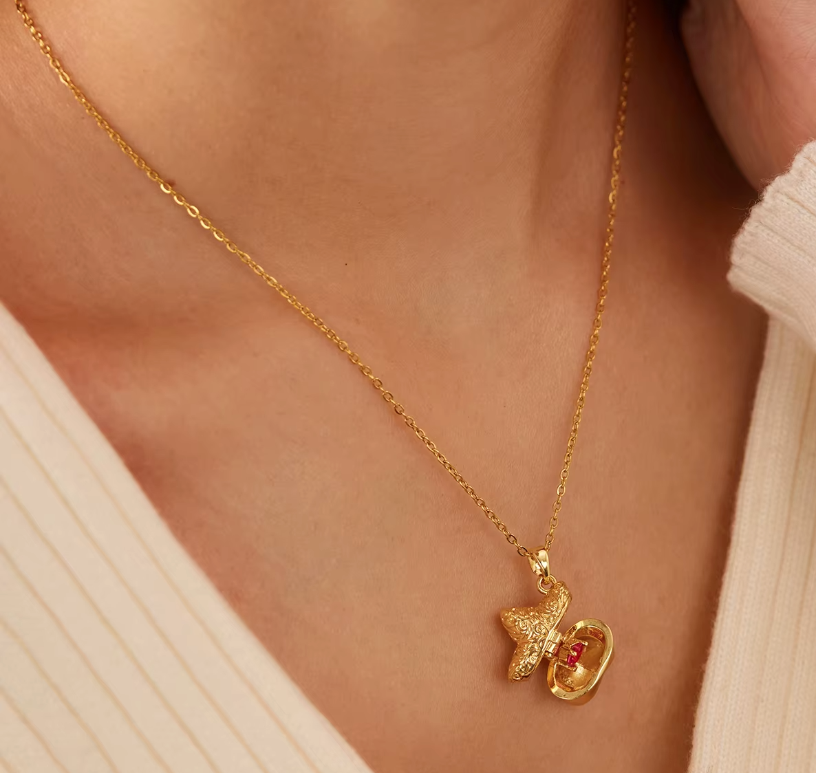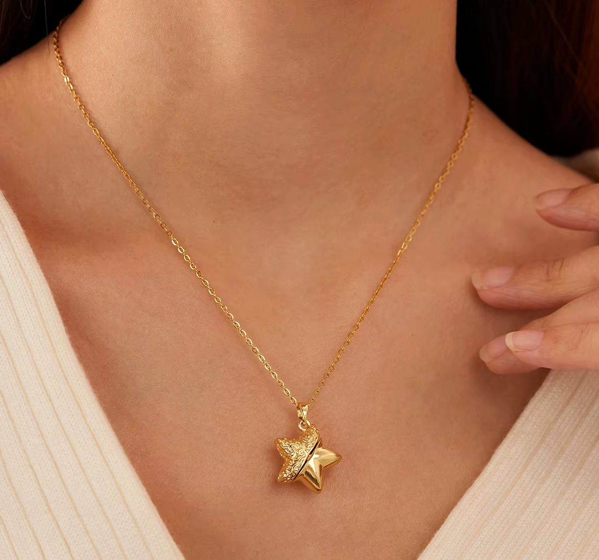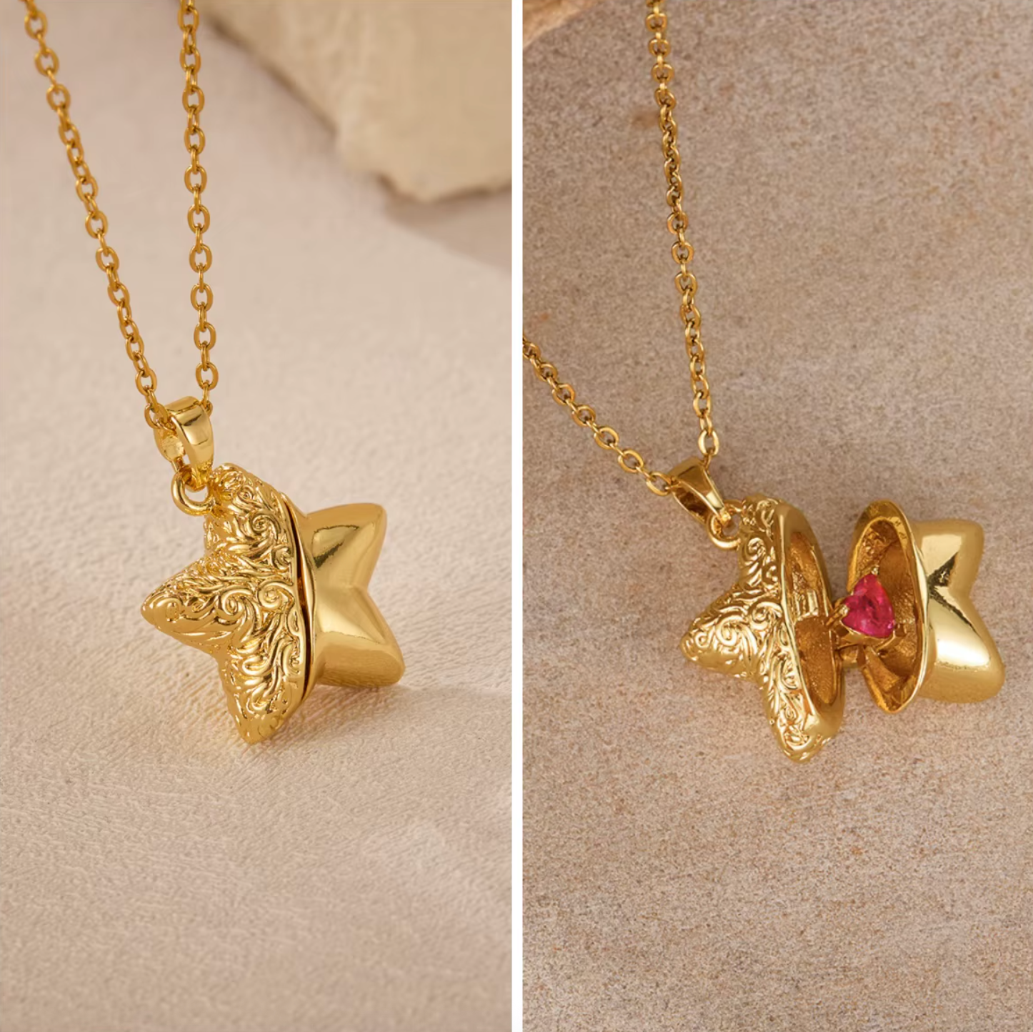 A Heart Held Inside — at the center of The Heart Within Star Gold 14k Necklace is a delicate heart, thoughtfully placed within the star locket. Designed to be revealed only when opened, it represents love, meaning, and what’s meant to be kept close.